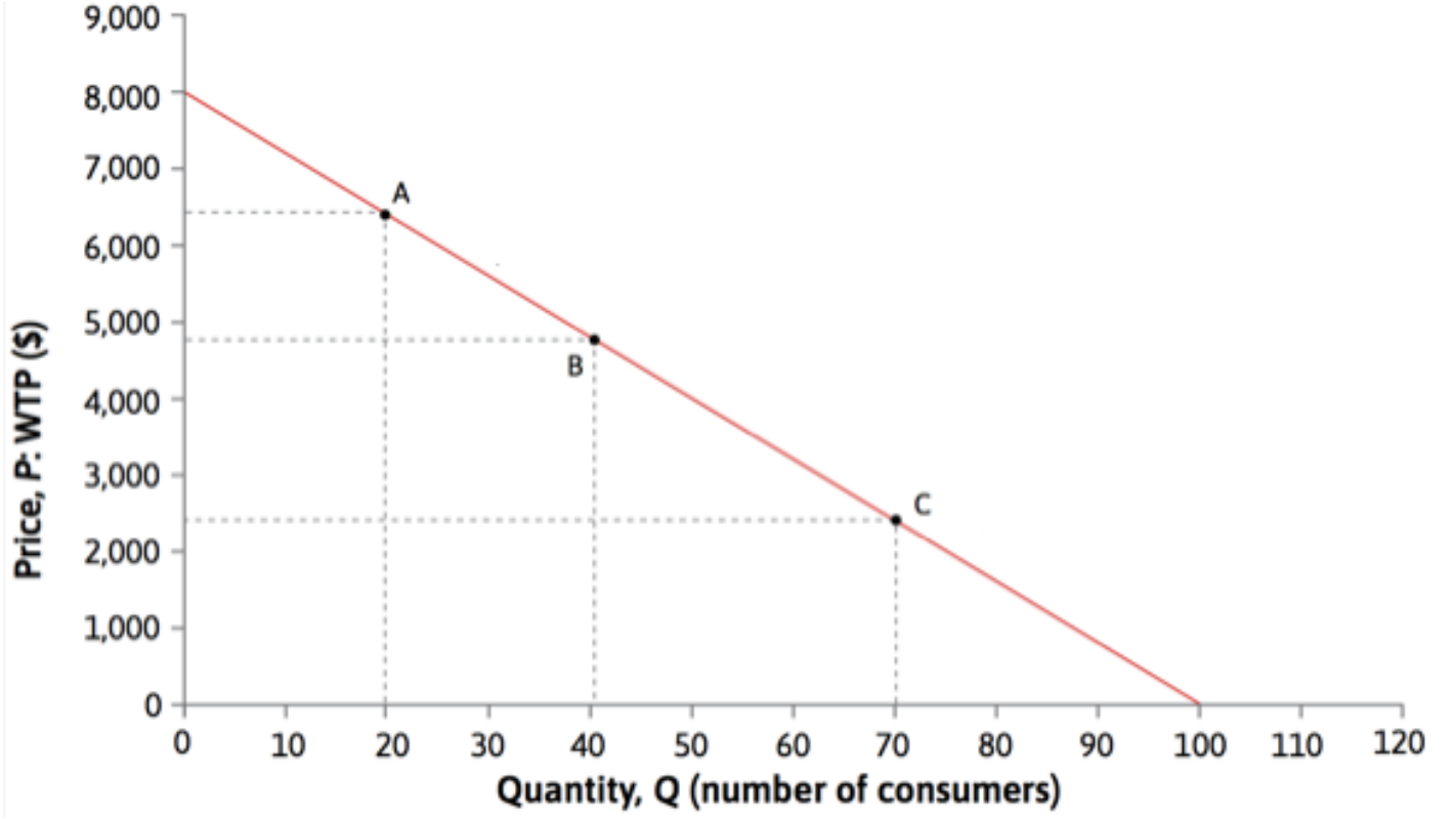 The demand curve of a price-setting firm is shown below.
