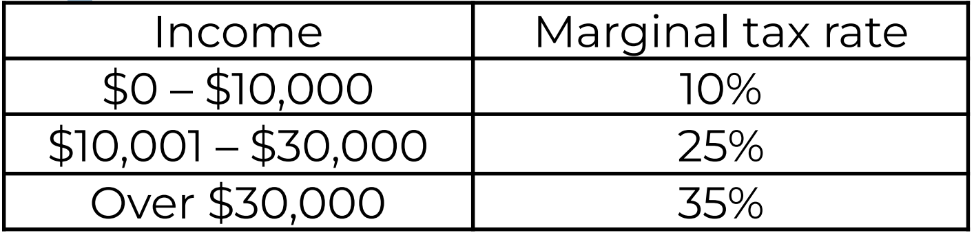 Max pays $10,000 x 0.1 + $15,000 x 0.25 = $4750 of income tax.