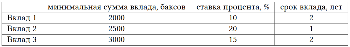 Господин Р. выбирает, на какой из предложенных Банком вкладов положить 2750 баксов, которые он выиграл в лотерее. Всего 3 варианта, каждый подразумевает начисление по сложным процентам: