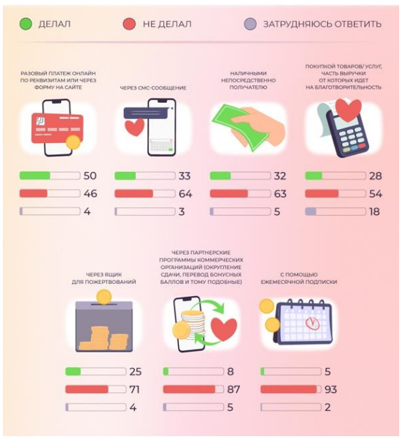 2. Какой фактор является определяющим при оценке уровня вовлеченности граждан в практики благотворительности? Свой ответ обоснуйте, опираясь на приведенные данные опроса и инфографики.