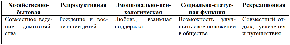 3) Распределите мотивы вступления в брак, обозначенные в вопросе 8, согласно функциям семьи, указанным в таблице.