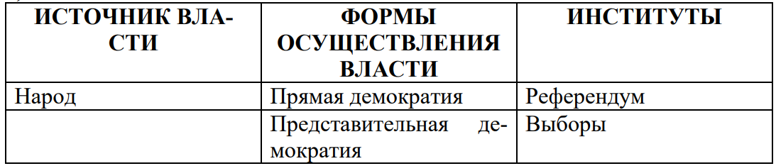 2. Составьте таблицу, в которой эти понятия группируются по следующим критериям: «Источник власти», «Формы осуществления власти», «Институты».
