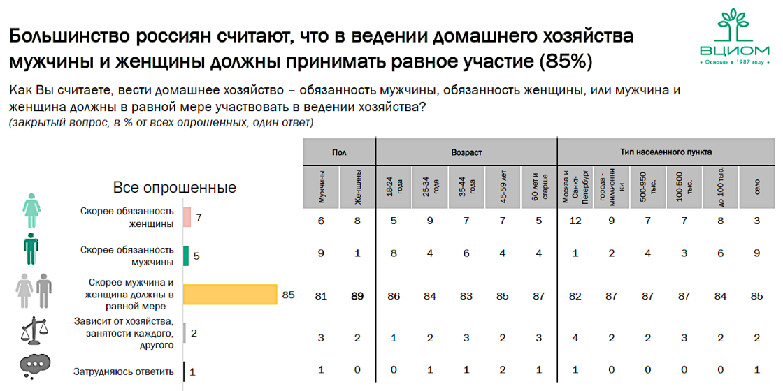 Рисунок 2. Мнение россиян по поводу ведения домашнего хозяйства