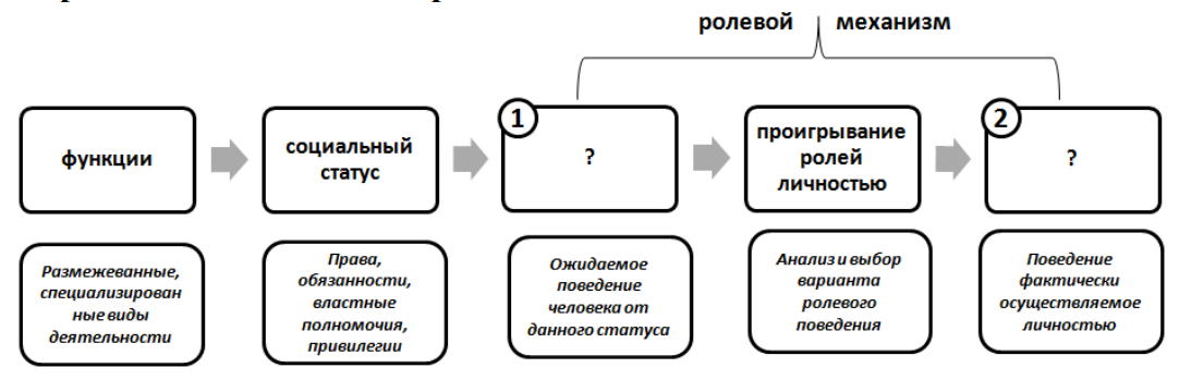 Ниже представлена схема, включающая статусно-ролевые элементы социального поведения личности. В верхнем квадрате приведены социологические термины, а в нижнем — их содержание.