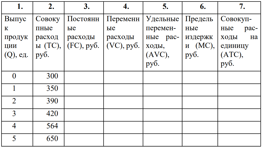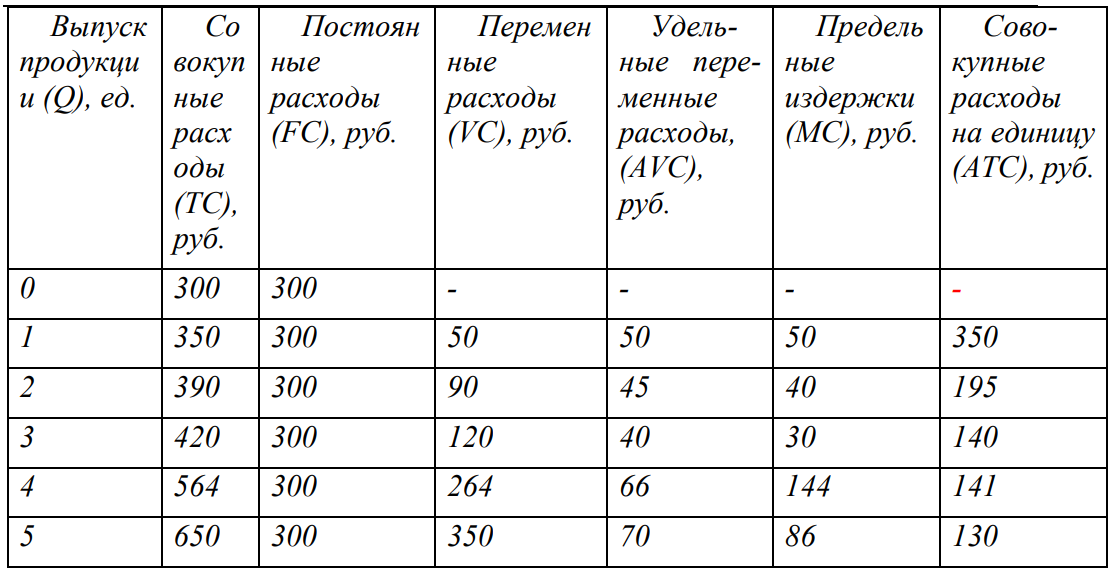 В таблице представлена информация о совокупных расходах организации в краткосрочном периоде при производстве различного количества единиц продукции.