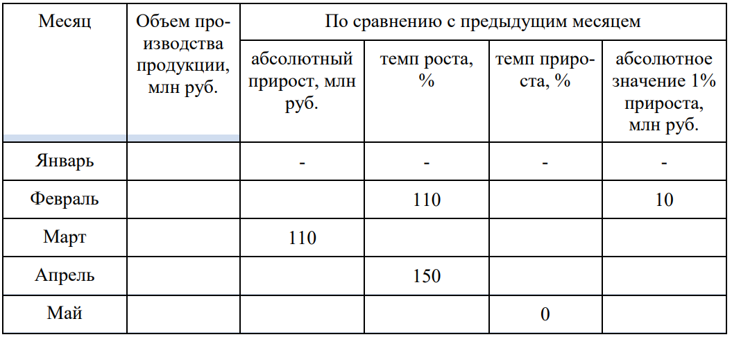 1. На основе имеющихся показателей заполните пропуски в таблице.