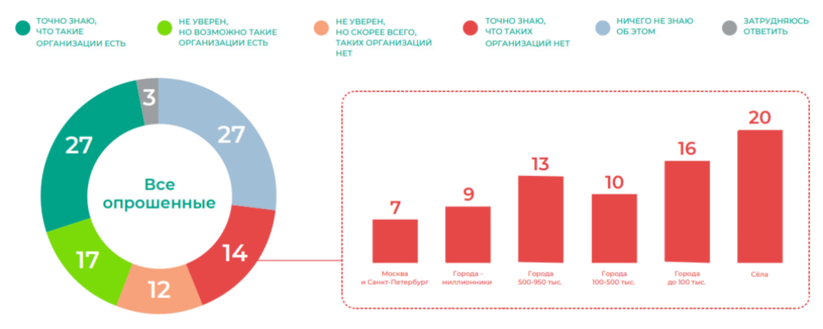 3. Возможно ли по результатам исследования сделать следующий вывод: «Россияне слабо информированы о специализированных местах помощи бездомным»? Свой ответ обоснуйте, приведя количественные показатели.