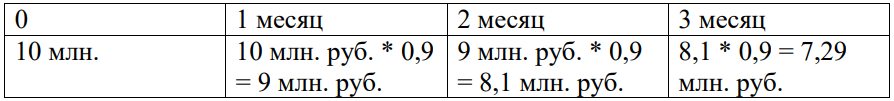Цена на недвижимость в Москве ежемесячно падает на 10\%. Сколько составит стоимость квартиры через 3 месяца, если сейчас ее цена равна 10 млн. руб.? Приведите расчеты.