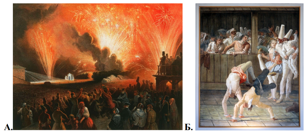 \begin{array}{|l|c|c|c|c|c|c|} \hline & 1 & 2 & 3 & 4 & 5 & 6 \\ \hline \text{A. Понятие (цифра) / изображение (буква)} & 6 & \text{Б} & \text{Д} & 3 & 5 & \text{В} \\ \hline \text{B. Что именно изображено на картинке?} & & \text{цирк} & \text{театр} & & & \text{стадион} \\ \hline \end{array} По 1 баллу за каждую верно заполненную позицию в первой строке таблицы. 1 балл за каждую верную подпись изображения во второй строке.